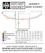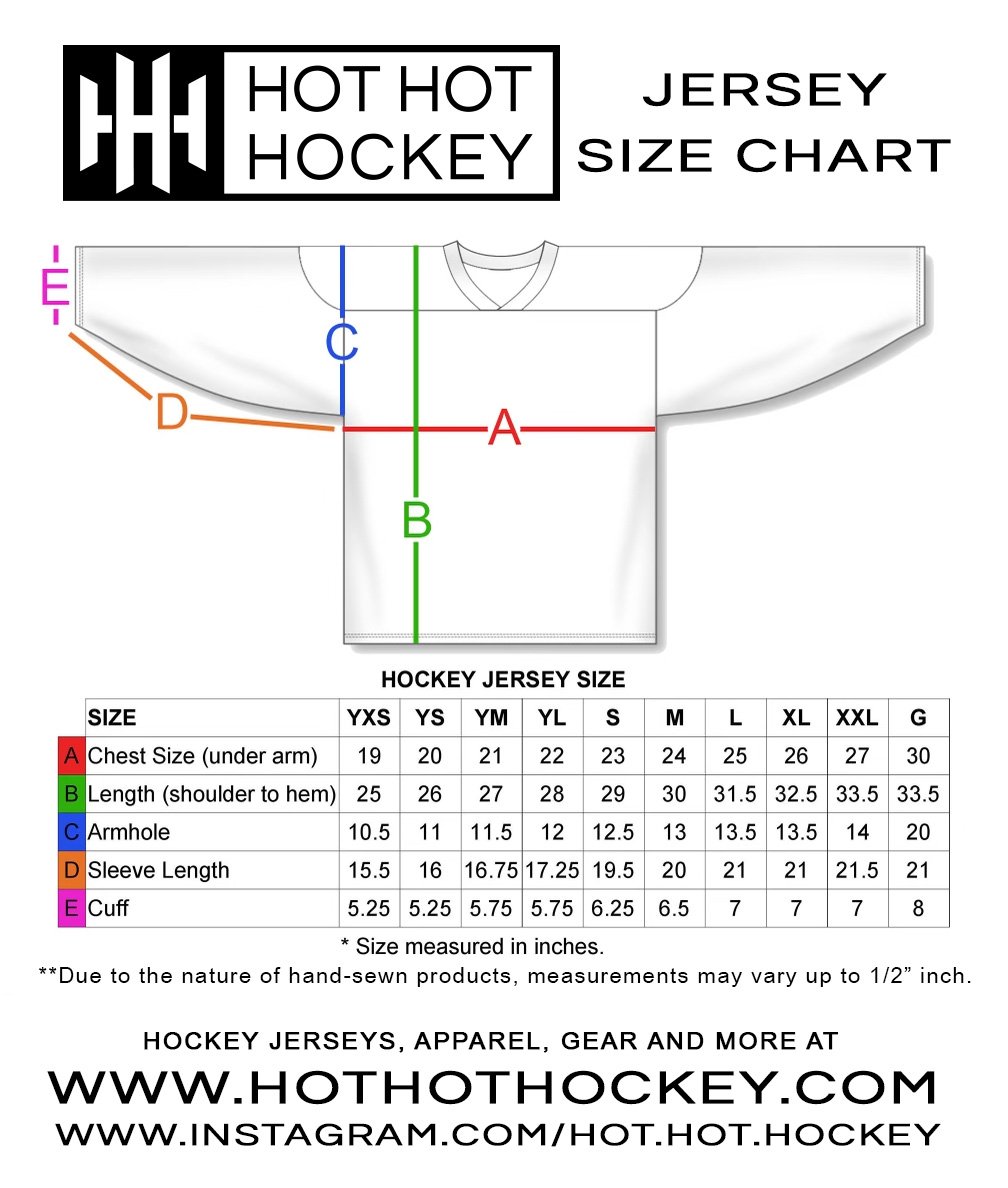 The jersey is made with 100% breathable, moisture wicking polyester fabric material to help keep you cool and dry on the hockey rink. Full sublimation print jersey with brilliant colors on Hot Hot Hockey's DryCoolFlow fabric.